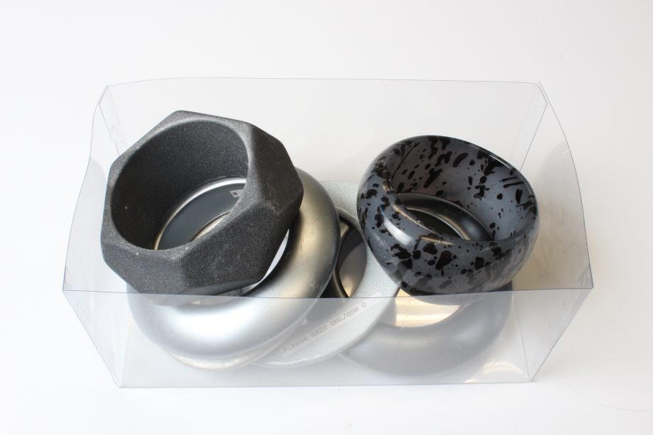 BOX OF ASSORTED GREY BANGLES